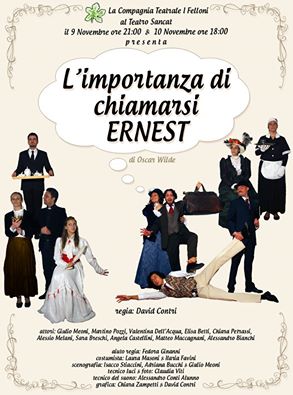 Ieri sera ho avuto il piacere di essere invitata in un nuovo, per me, spazio culturale di Firenze, il teatro Sancat, in via del Mezzetta, dove ha debuttato uno dei testi più celebri del teatro di tutti i tempi, “L’importanza di chiamarsi Ernest” di Oscar Wilde, portato in scena dalla compagnia teatrale I Felloni che “è lieta di mostrarvi come una piccola e innocente bugia possa dare vita ad un’esilarante vicenda…” diretta dal giovane, e già molto promettente, David Contri (che ho applaudito da poco in veste di attore ne “La Bisbetica domata”…) con la collaborazione del suo staff tecnico composto da Fedora Ginanni aiutoregista, le costumiste Laura Masoni e Ilaria Favini, la scenografia di Isacco Stiaccini, Adriana Bucchi e Giulio Meoni, il tecnico luci e foto Claudia Viti, il tecnico del suono Alessandro Conti Alunno e la grafica di Chiara Zampetti e David Contri.