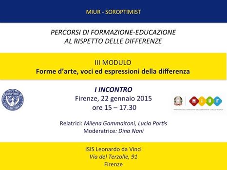 Oggi pomeriggio ha avuto luogo presso l’aula magna dell’istituto industriale Leonardo da Vinci di Firenze davanti a un numeroso pubblico il primo incontro del III modulo di “percorsi di formazione-educazione al rispetto delle differenze” dal titolo “Forme d’arte, voci ed espressioni della differenza”.