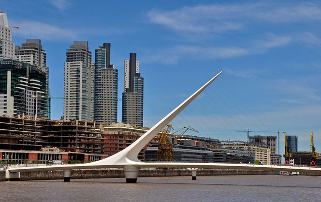 Per i pedoni che entrano nel quartiere dl centro la prima impressione di Puerto Madero è dominata da un impressionante ponte pedonale a sbalzo che si estende nel dock 3. Bianco brillante e asimmetrico è un moderno “landmark” completato nel 1991 dall’architetto spagnolo Santiago Calatrava che ha dichiarto che il suo disegno è stato inspirato dalla forma di una coppia mentre balla il tango. Il ponte, chiamato Puente de La Mujer, è un ingresso appropriato nel quartiere che onora la storia delle donne in Argentina.