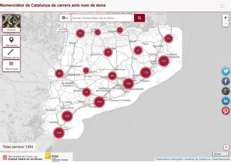 La nuova applicazione www.carrersdones.cat è uno strumento collaborativo aperto a chiunque che permette di costruire una mappa mostrando le strade della Catalogna dedicate alle donne.