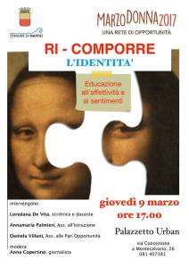 …ci manca davvero poco… è bello essere parte di un buon progetto come “Marzo Donna” organizzato dal Comune di Napoli. Molte persone ci lavorano affinché resti un segno del percorso, del contributo, delle idee che lo hanno animato. Persone con competenze diverse, ma persone legate dall’unico filo del valore di fare rete per affrontare una della piaghe più dilanianti che viviamo oggi: la violenza contro le donne. Una piaga dolorosa e difficile da sanare perché coinvolge don…ne e uomini, perché non si lotta contra un singolo individuo, ma contro una “stasi culturale” che danneggia le donne quanto gli uomini. “Ri – Comporre l’identità” è uno degli eventi di questo mese, uno di quelli che mi coinvolgono in prima persona ma la cui attuazione è resa possibile grazie a una “rete di donne” che insieme si rivolgono a donne e uomini di età diverse per afferrare in pugno il bandolo di questa complessa matassa e dipanarne con delicatezza ma determinazione il filo. Siamo una rete che si amplia e che chiede di farlo grazie al contributo di quanti vorranno essere parte di questo bel progetto che potrebbe essere un bel inizio… vero Anna Copertino Daniela Villani Erica Prisco Angela Procaccini…. e tutte le altre e gli altri che vorranno unirsi a noi? Non è un parlare per parlare, non è un esibirsi e ostentare… no, la scelta è per un dialogo costruttivo che apra nuovi spazi di confronto e di lavoro. La scelta è non restare sul ciglio della strada a guardare, ma impegnarsi affinché un cambiamento ci sia. Chi non si scontra mai con le difficoltà di un adolescente? Chi non deve mai ripensare a se stesso e modificarsi per reagire al silenzio indifferente verso ciò che accade intorno? Chi può davvero sentirsi estraneo al problema? Le cose non esistono solo quando ci toccano da vicino, bisogna modificarle prima che tocchino ancora altre da vicino… la storia di una è la storia di tutte e di tutti.