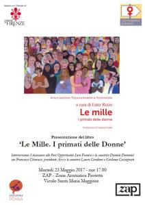 Martedì 23 Maggio, alle ore 17.00, ZAP – Zona Aromatica Protetta (Vicolo Santa Maria Maggiore) ospiterà la presentazione del libro “Le Mille. I primati delle Donne” a cura di Ester Rizzo, con prefazione di Valeria Fedeli.