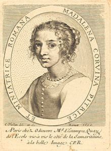 Maddalena Corvina si specializzò nella pittura e nella miniatura realizzando opere, come ritratti di piccolo formato e nature morte, che erano molto apprezzate e abbastanza diffuse presso le collezioni romane.