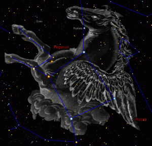 (riferimento al mitologico cavallo alato sui cui Bellerfonte uccise la Chimera, nochè alla costellazione di Pegaso che è visibile nel cielo di novembre)