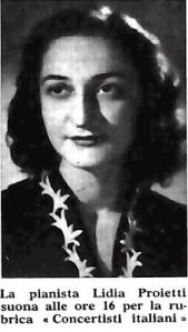 “Nostro padre era un grande appassionato di musica – ci ha raccontato Sergio Proietti, fratello minore della sig.ra Lidia – io stesso fui indirizzato verso lo studio del violino e ottenni qualche risultato apprezzabile, ma Lidia aveva un talento unico e naturale per il pianoforte; talento che poi coltivò al conservatorio di Bologna“.