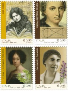 In attesa di azioni più incisive ben venga, dunque, l’encomio statale attraverso l’emissione l’8 marzo 2018 da parte del Ministero dello Sviluppo di 4 francobolli ordinari, del valore di 0,95 euro, appartenenti alla serie Le Eccellenze italiane del Sapere e dedicati ad Ada Negri, Maria Gaetana Agnesi, Elena Lucrezia Cornaro Piscopia, Eva Mameli Calvino.