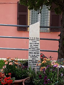 Ines Negri fu arrestata il 16 agosto del 1944, ad Albisola Mare, nei pressi di Villa Faragiana, mentre accompagnava in montagna i militari. Dopo tre giorni di torture fu condannata a morte “per aver incitato alla diserzione diversi soldati della Divisione San Marco” e subito fucilata. Identica sorte toccò la settimana successiva a Clelia Corradini.[1]