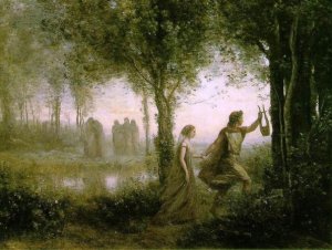 Cosi avvenne che, premiato Orfeo e Euripide, ella straziata in cuore dal pianto della madre lasciò la mano di Orfeo per correre indietro e abbracciare la madre, stringendosi forte al petto.
