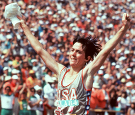 Alle Olimpiadi estive del 1984 vinse il primo oro olimpico per la maratone femminile con il tempo di 2:24:52, con più di un minuto sulle sue rivali (nonostante il forte caldo, lo smog e un tasso di umidità molto alto, che provocarono la drammatica defaillance alla Dorando Pietri dell’atleta svizzera Gabriela Andersen Scheiss). Dietro di lei si classificarono Grete Waitz, Rosa Mota e Ingrid Kristiansen, le migliori atlete del periodo.