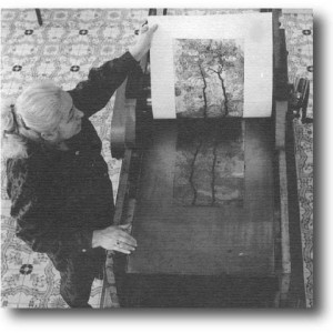 La biografia di Federica Galli è contrassegnata dai viaggi culturali in giro per l’Europa, dalle mostre personali e collettive – pubbliche e private -, dagli incontri fruttuosi con critici e letterati del tempo, ma anche dal succedersi degli acquisti dei torchi calcografici, dal più piccolo acquistato nel 1956 che le impone la realizzazione di opere di dimensione ridotta, all’ultimo – grande e professionale – comprato nel 1964 ancora oggi in uso nella fondazione voluta dall’artista per disposizione testamentaria. Il torchio è uno strumento indispensabile all’incisore a cui la Galli ha dato grande importanza, così come a tutto ciò che ha riguardato il suo mestiere. Sin da giovane gli amici e i collaboratori riferiscono un’attenzione maniacale verso i dettagli: per gli attrezzi e i materiali, così come per la fase inventiva. Quest’ultima consta di tre fasi di lavoro, quella creativa tipica del mestiere d’artista e quella tecnica che nell’incisione consiste di due momenti: l’incisione vera e propria della matrice e, successivamente, la stampa su foglio di ciò che si è inciso. La fase inventiva e creativa della Galli inizia con lunghe e meditate osservazioni della natura dove esegue le prime linee sulla matrice, en plein air; un metodo di lavoro considerato normalmente proibitivo per l’incisore all’acquaforte e nel passato praticato, si favoleggia, solo dal grande Giambattista Piranesi. Dopo alcuni giorni di lavoro dal vero la Galli si trasferisce nello studio dove rifinisce i dettagli, per giorni o settimane. Completata l’incisione della matrice questa viene immersa nell’acido (acqua forte) perché corroda i segni scalfiti nella vernice in modo che diano il risultato voluto.