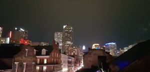 A questo punto l’autrice viene “stregata” sì, ma da cosa? Da quel contrasto che lei definisce “magico” che si viene a creare tra quelle case basse, povere e antiche e quei grattacieli che spiccano in lontananza, grandi, moderni, ricchi e illuminati da luci artificiali e cangianti ma, soprattutto, da quel cielo che tende all’imbrunire ma che è pieno di “nubi ballerine che sorridono ma sanno anche dar le spalle”