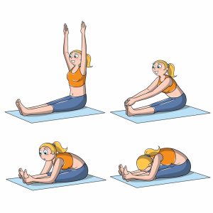 | La pinza: seduti/e su di un tappetino con le gambe distese portiamo le braccia in avanti, prima poggiando le mani sulle cosce e facendole scorrere in avanti sulle ginocchia, poi verso le tibie e le caviglie arriviamo a toccare i piedi con le mani. Mantenere la posizione raggiunta per trenta secondi e tornare indietro con la schiena dritta per dieci secondi di recupero, ripetere l’esercizio per tre volte. Le prime volte se si trova un po’ di difficoltà nel raggiungere i piedi con le mani si possono flettere un po’ le ginocchia fino a che si arriverà a tenerle tese, la schiena sempre più abbassata e la testa più vicina alle gambe. | ![]() |