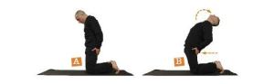 In ginocchio, mani posizionate sui glutei, testa appoggiata sullo sterno (A), inarcare all’indietro testa, spalle e il tratto toracico della schiena (B). Inspirare quando si inarca ed espirare mentre si ritorna alla posizione di partenza. Durante il rito mantenere rilassate le mascelle. |