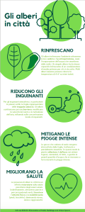 «Ogni albero ha la stessa azione rinfrescante di un condizionatore di media potenza, per chi ci sta sotto. Allontanandosi l’effetto si smorza, ma non se metti tanti alberi vicini. Pensiamo ai viali alberati: conosciamo tutti la sensazione di piacere che si prova a camminarci sotto in un torrido pomeriggio d’estate». Questa azione rinfrescante si esercita per decine di metri se il gruppetto di alberi è sufficientemente ampio e, nel caso dei parchi, può estendersi per due, tre isolati.