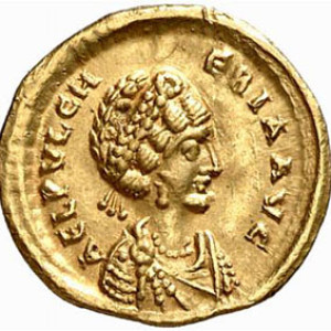 Figura già bizantina, dunque, e non solo in ossequio alle ripartizioni della storiografia, ma per l’atmosfera di ieratica religiosità e rigida ortodossia che Pulcheria seppe imporre alla corte di Costantinopoli e ai rituali della vita cittadina.