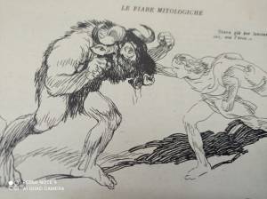 Quando arrivarono nella sala centrale, sentirono dei mostruosi ruggiti finchè non apparve lui, il Minotauro, minaccioso con gli occhi iniettati di sangue e le pupille che roteavano scintille. Stava già per lanciarsi contro Teseo che era il primo della fila, ma il nostro eroe tirò fuori il coltello magico di Arianna e con un colpo ben assestato, lo abbattè pesantemente a terra; il Minotauro era ancora agonizzante quando Teseo chiamò a raccolta tutti i suoi compagni: