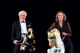 Non saprei come definire questa “operazione teatrale” immaginata da Enrico Castellani, insieme a Valeria Raimondi, di Babilonia Teatri focalizzata su due mostri sacri del teatro italiano, Paola Gassman e Ugo Pagliai, insieme da cinquanta tre anni nella vita e sul palco. Castellani, stando sotto il palco con la mascherina e il microfono, ha “dialogato” con Gassman e Pagliai i quali si sono prestati a recitare, alla loro verde età, alcuni brani di “Romeo e Giulietta” con la loro classe attoriale e stando al gioco con molta ironia. Molto brava Valeria Raimondi, anche lei con mascherina e microfono, che ha ampliato il discorso su Shakespeare con due interventi recitati. Pagliai e Gassman hanno anche cantato, in playback, due canzoni per celebrare la storia d’amore dei due amanti veronesi e la loro.