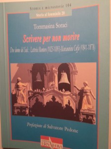 ed è stato un vero piacere leggere questo suo nuovo libro dedicato a due poete siciliane, Letteria Montoro e Mariannina Coffa, entrambe nate e vissute nel diciannovesimo secolo, la prima a Messina dal 1825 al 1893, la seconda a Noto, dal 1841 al 1878 “due donne diverse tra loro per temperamento e scelte di vita ma accomunate dal desiderio mai sopito di far sentire la loro voce. Di esprimere i loro sentimenti nella scrittura che, sia pur non priva di apprezzamenti, è rimasta nell’ombra della periferia culturale e della considerazione dell’intellettualità dell’epoca…” cito dal prologo dell’autrice che voluto, con questa sua opera, contribuire a riportare alla luce due donne che hanno trovato nella scrittura un modo per non morire.