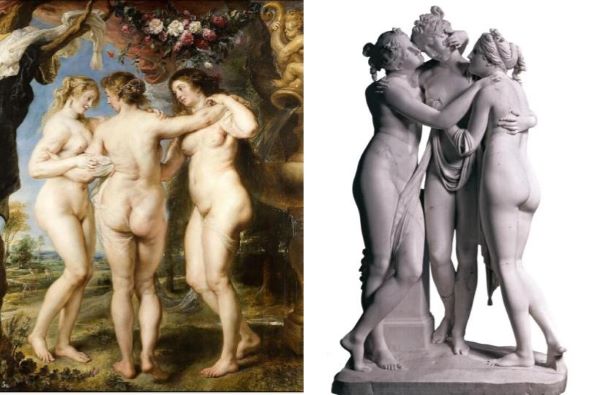 Nell’ iconografia antica, la donna è stata sempre associata alla fecondità, era un simbolo di fertilità. Le Veneri preistoriche, piccole statuette femminili con forme abbondanti, incarnavano la potenza generativa della donna, come la famosissima Venere di Willendorf. Nell’antica Grecia, l’ideale estetico del corpo femminile si rifaceva alla perfezione delle proporzioni e all’armonia delle forme. Pensiamo all’Afrodite di Prassitele, completamente nuda, o alla Venere di Milo, che si leva col busto nudo fino all’addome e le gambe velate dal panneggio.