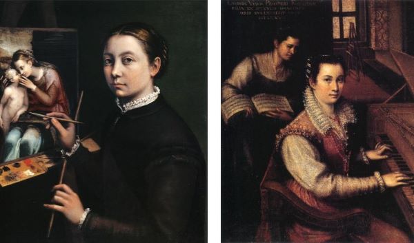 I primi tentativi di ricerca di un ruolo forte del femminile nella cultura, nella politica, nella società, cominciano a comparire nel tardo Rinascimento. Sofonisba Anguissola e Lavinia Fontana, pur lavorando in un sistema sociale tradizionale, dominato da un potere maschile, hanno usato la loro arte come uno strumento di affermazione. Entrambe queste artiste hanno praticato il genere dell’autoritratto per costruirsi un’identità del tutto nuova: da modella al servizio di un artista, la donna si trasforma in figura attiva e creativa, e racconta una storia molto diversa da quella raccontata fino ad allora dagli artisti maschi, una storia in cui le donne dimostrano di avere una propria personalità e di saperla imporre.