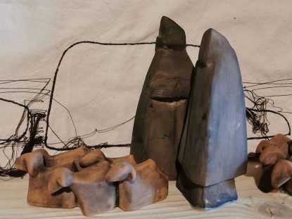 E infine il tema del presepe, che ha sempre affascinato l’artista sarda Maria Lai (1919–2013): li ha realizzati con materiali poveri, in legno, terracotta, smalto, stoffa, iuta, rinnovando un soggetto antico e caricandolo di una forte componente simbolica. Il mondo ricreato nei suoi presepi oscilla tra favola e storia, tra il fatto miracoloso, unico e irrepetibile, e l’accadimento quotidiano: un bambino qualunque che nasce in una capanna e che diventa il re del mondo, e sua madre, una giovane ragazza sposata a un vecchio falegname, che l’ha partorito da vergine. È la storia di una famiglia migrante in viaggio, ma anche quella di un Dio che è sceso in terra, l’infinito che diventa finito.