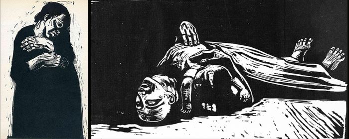 A sette anni di distanza dalla morte di Peter, nel 1921-22, esegue un ciclo di sette xilografie, La guerra, ora al MoMA di New York, e racconta un dolore che non è solo il suo, ma di tutte le mamme che hanno perso i loro figli. La guerra, vinta o persa, è comunque una catastrofe per tutti, non solo per i giovani mandati al fronte, ma anche per orfani, e vedove.