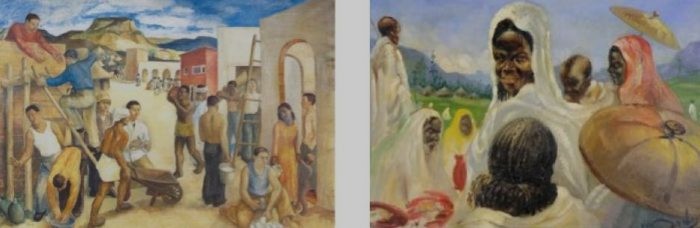 Col fascismo la fortuna dell’arte a soggetto esotico e coloniale arriva in Italia. L’alterità coloniale è un concetto fondamentale nella retorica della comunicazione fascista, e va dalla rappresentazione folcloristica, basata su clichés di indigeni come “selvaggi”, dai tratti animaleschi o deformi, a quella di fattezze piacenti e seduttive. Molti artisti partono in maniera autonoma o su invito di enti, e riportano in patria la visione di popolazioni controllate dagli europei e subordinate. Anche la nudità, parziale o totale delle figure femminili esprime sempre un concetto di subordinazione.