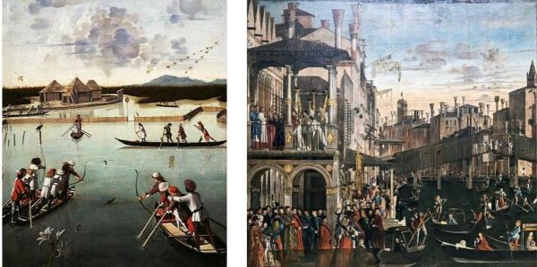Vittore Carpaccio dipinge gondolieri neri nella Caccia in laguna, e nell’affollatissimo Miracolo della guarigione dell’ossesso descrive una città multirazziale, quale doveva essere realmente Venezia.