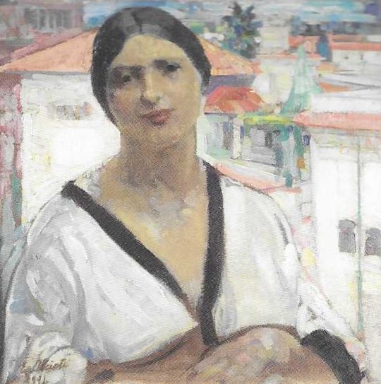 Evangelina Gemma Alciati partecipò a una sola delle esposizioni della Secessione romana, quella del 1915, presentando un Autoritratto dell’anno precedente dalla vivace ricerca cromatica e dalla salda e sintetica struttura compositiva.