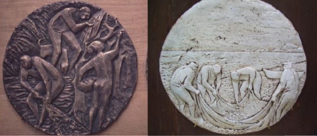 Ad Ancona segnaliamo ancora gli imponenti bassorilievi nell’aula magna del Liceo Savoia e quelli sul bancone dell’ex caffè “Tazza d’oro” sul corso.