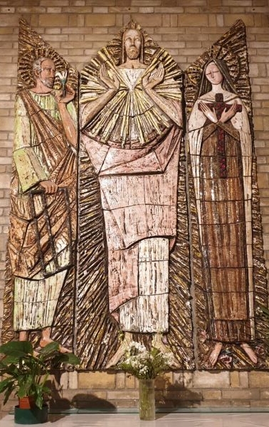 «La fede di Giò Fiorenzi ha ispirato le sue opere di arte sacra – ha spiegato lo storico dell’arte Claudio Paolinelli – basta vedere il Crocifisso bronzeo e i bassorilievi sul fonte battesimale che, sicuramente, ha realizzato dopo aver studiato i testi sacri. Ha saputo sposare la tecnica ceramica con la fede, come ci mostra anche il Trittico del Sacro Cuore, con il Cristo affiancato da Santa Teresa e da San Giuseppe. La particolarità è che l’artista ci mostra la potenza del cuore di Gesù, senza rappresentarlo. Le figure appaiono inondate di luce e, anche se il cuore non è rappresentato, tutto porta al centro, alla figura di Cristo».