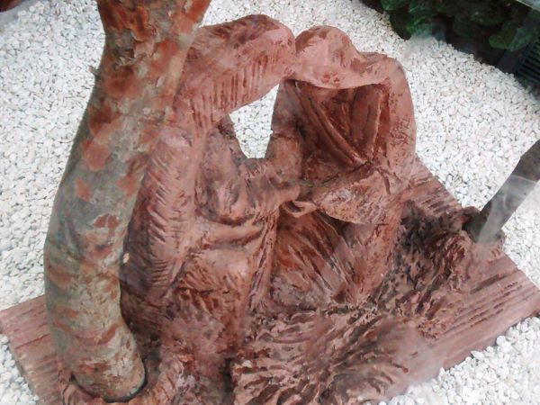 La sua Sacra Famiglia è stata esposta in occasione delle festività natalizie sotto il grande albero di piazza Roma a Senigallia, all’interno di una bacheca piramidale: è un gruppo scultoreo realizzato in gesso, in cui i personaggi sono diversi dalla solita iconografia; l’artista infatti ha colto un attimo di intimità della famiglia nel gesto di san Giuseppe che insieme a Maria accudisce il piccolo Gesù.