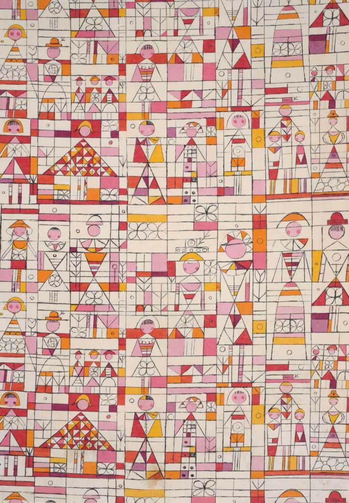 Tuttavia, per comprendere il successo che ebbe in Gran Bretagna e oltreoceano, occorre tornare al dopoguerra, quando si avvertiva a tutti i livelli un forte desiderio di cambiamento, di ispirazione e di colore, a partire dalle abitazioni. L’energia e l’innovazione delle disegnatrici britanniche rivoluzionò il design introducendo l’arte moderna e contemporanea attraverso i tessuti, la carta da parati, le pavimentazioni. In una parola, democratizzarono l’arte, si chiamavano Lucienne Day, Marianne Mahler, Barbara Brown e, appunto, Jacqueline Groag. In particolare Jacqueline infuse nelle sue produzioni un senso di ottimismo e vitalità con un approccio nuovo e vibrante ispirato alle opere di Paul Klee e Roaul Dufy. Aveva sviluppato una teoria secondo la quale ogni persona ha un’età immutata nell’anima, indipendentemente dall’età anagrafica. Lei si riconosceva otto anni e alcuni critici le attribuirono, non di rado, un affascinante tratto infantile.