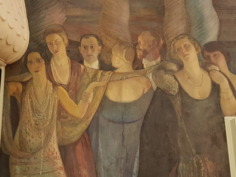 Per lei quel viaggio si trasformò in una significativa opportunità lavorativa perché, oltre ad alcune esperienze espositive, ebbe modo di partecipare alla decorazione del padiglione realizzando nelle lunette del chiostro «un affresco tipo umbro che è riuscito bellissimo e pieno di carattere e di stile» come annotò Marcello in una lettera al padre. Quell’«affresco tipo umbro» tracciò una prima linea di demarcazione nella carriera e nello stile della pittrice che, assecondando i caratteri neorinascimentali del progetto piacentiniano, si allontanò dal linguaggio che le era proprio, «una piccola incrinatura nella sua autonomia creativa […] una prima deviazione del suo stile, che cambia asservito al progetto e alle idee del coniuge» sottolinea Francesca Bottaccin nelle sue ricerche. Ma è anche vero che fu una sfida non da poco introdurre, accanto alla pittura da cavalletto, l’esperienza dell’affresco, tradizionalmente campo artistico maschile.