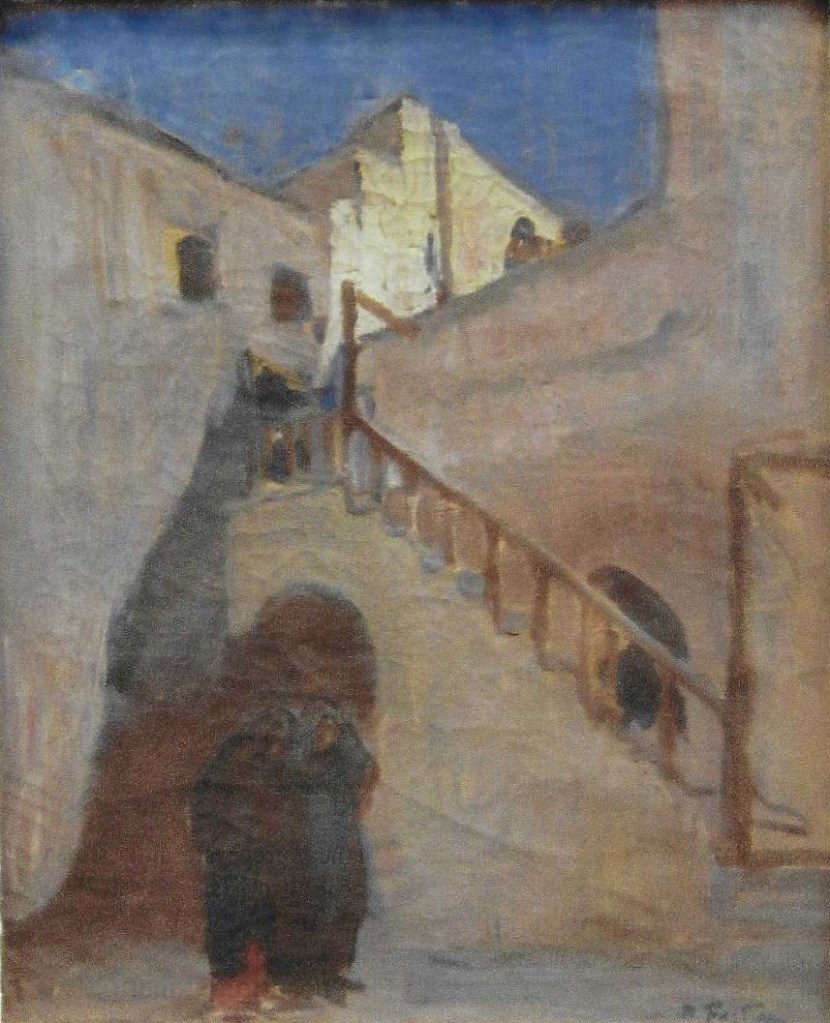 Altri lavori, pubblicati sulla rivista “Emporium” (n° 243 del marzo 1915), rivelano come la pittrice fosse al corrente delle esperienze artistiche d’oltralpe, in particolare quella Nabis che riecheggia nella bidimensionalità e nella linea sinuosa ed elegante con cui concepisce figure e ambienti della vita quotidiana egiziana.