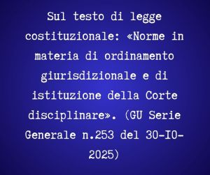 Qui sotto l’ultimo articolo della Legge costituzionale «Norme in materia di ordinamento giurisdizionale e di istituzione della Corte disciplinare». (25A05968) (GU Serie Generale n.253 del 30-10-2025).