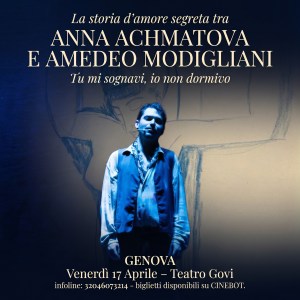 “Un amore intenso, proibito, bruciante in una Parigi bohémien fatta di poesia, arte e desideri” cito dal programma di sala. Questa sera il regista Antonio Nobili ha portato sul palcoscenico del teatro Govi la storia d’amore segreta, a Parigi, tra la poeta russa Anna Achmatova e il pittore livornese Amedeo Modigliani, entrambi giovanissimi, lei ventiduenne, lui ventisettenne, lei sposata da poco con un altro poeta russo, Gumilev, una storia a cui ha dedicato un libro da cui è tratto lo spettacolo.
