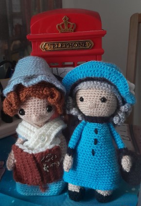 Jane Austen and Queen Elizabeth II … amigurumi* arte giapponese piccoli pupazzi imbottiti stile kawai, carino/a, tenero/a collezione *ami “lavorare a magli/uncinetto” e nuigurumi “peluche”